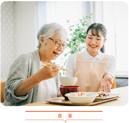 専属の栄養士による、バランスを考えた献立を採用しています。できる限り、手作りに拘り、出来立ての温かい食事を提供できるように努力しています。