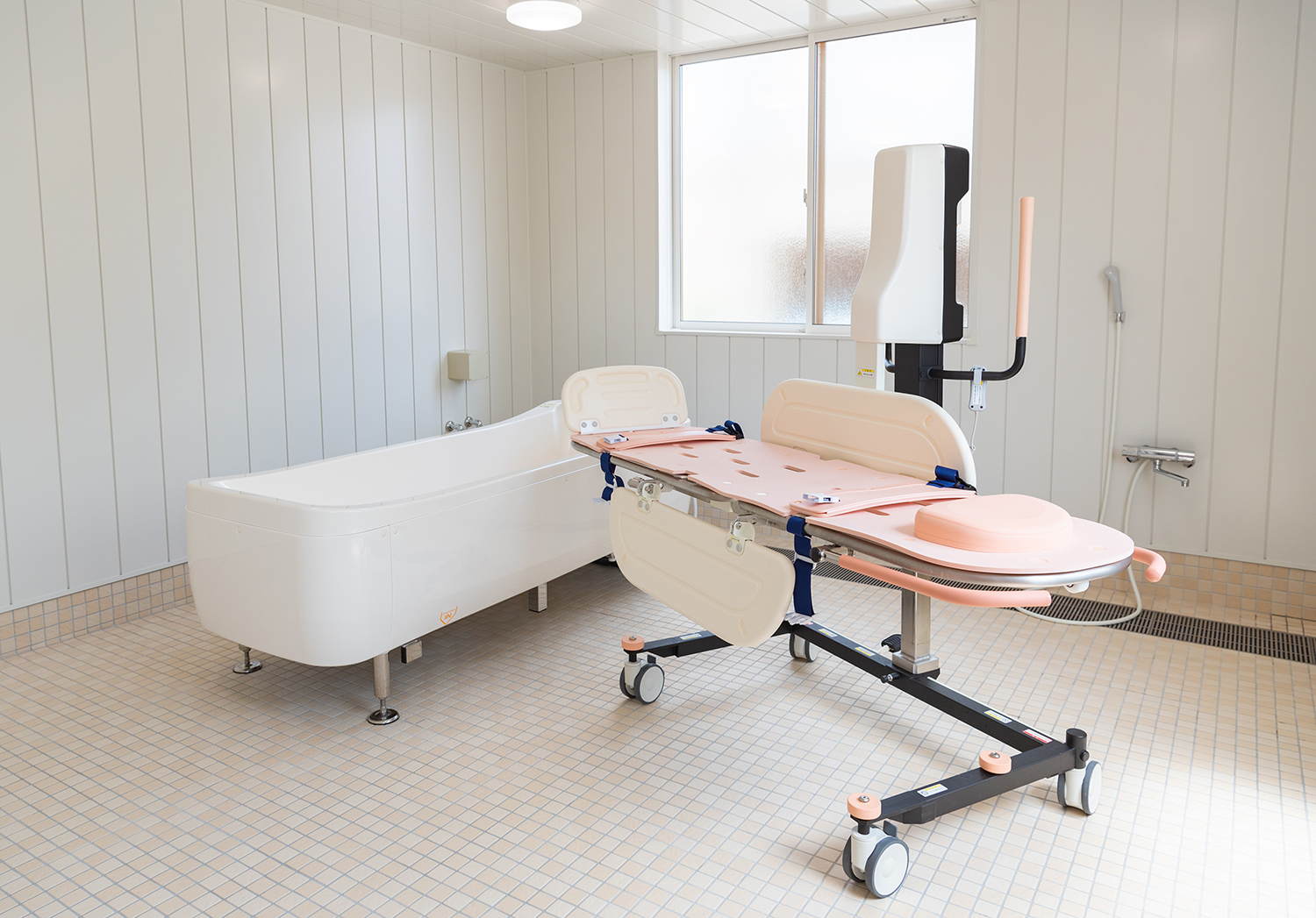 車椅子対応型のリフト浴、寝たきりの方でも入浴可能な特殊浴槽を設置